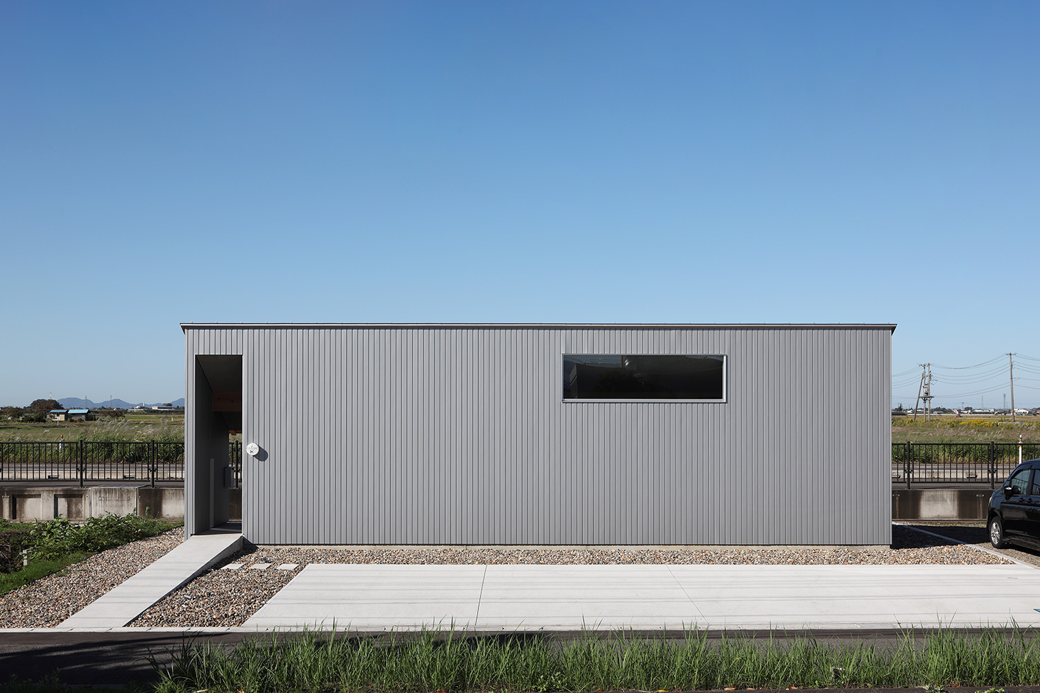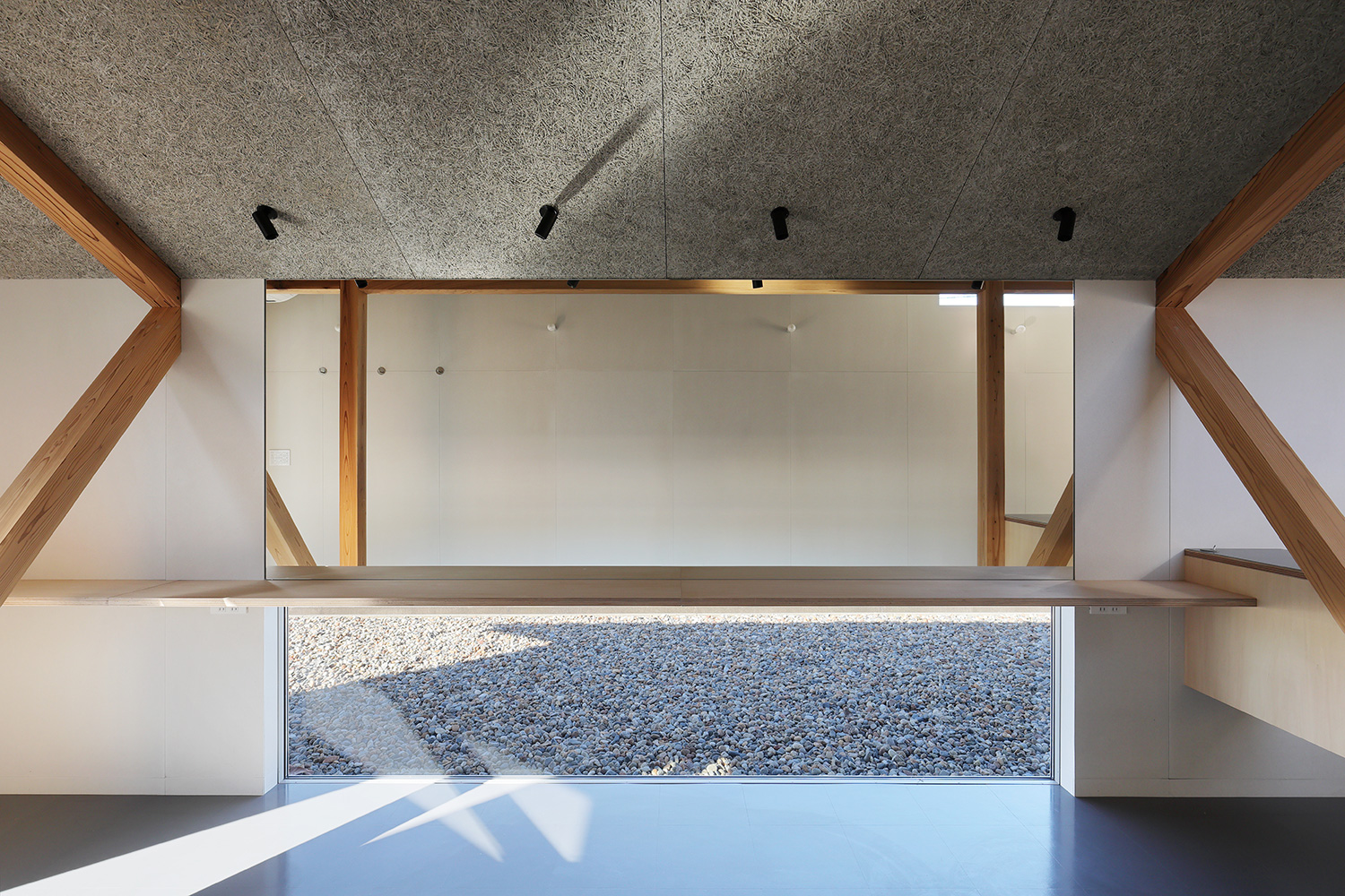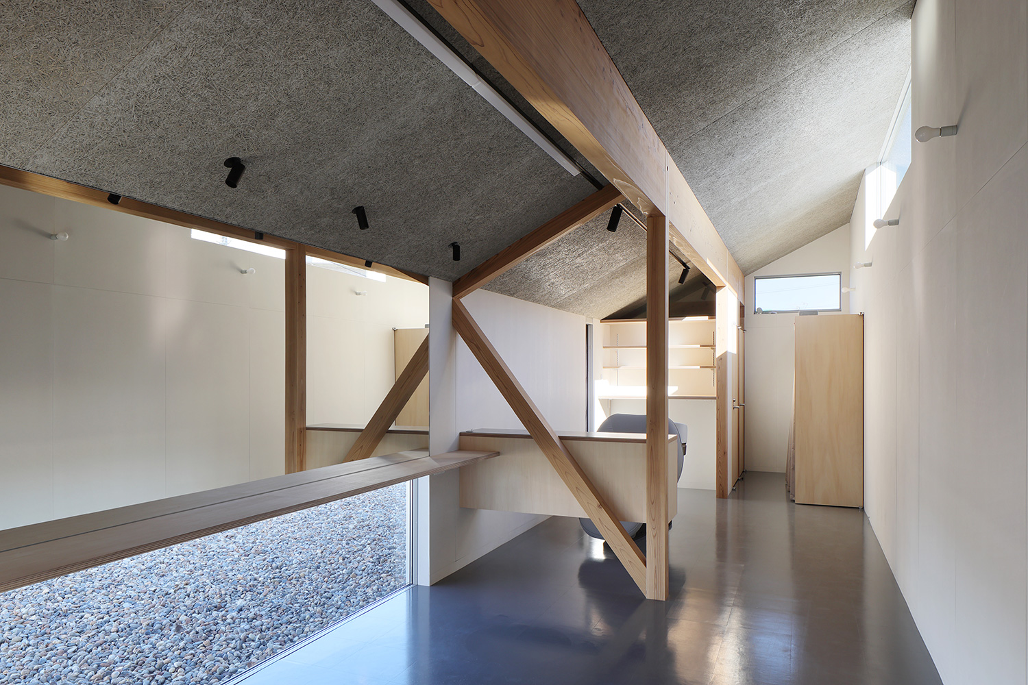 国道403号線沿い、道路から1段低い敷地に、カット席2席の美容室を設計しました。店内では、走行中の車のドライバーと視線が合わないように窓の位置を調整し、落ち着いた雰囲気を保ち、屋根の形状に合わせて天井に高低差を設け、狭い空間でも窮屈に感じさせないよう配慮しています。また、メンテナンスの手間を減らすため、耐久性があり、シンプルで素のまま使える素材を選定し、変わっていく自分の姿の背景になる様な内装を計画しました。 Type: 店舗Location: 新潟県新潟市Photo: 中村絵