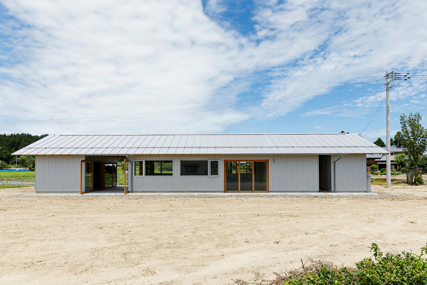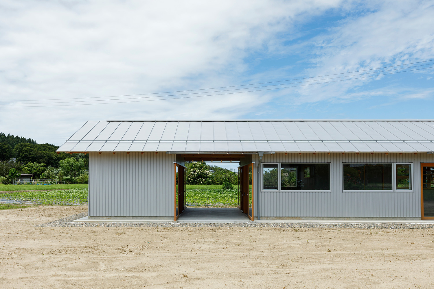 敷地奥には丘陵が綺麗に見える、元は畑だった敷地に近隣で採れる果物を使ってジャムを作る加工所を設計しました。