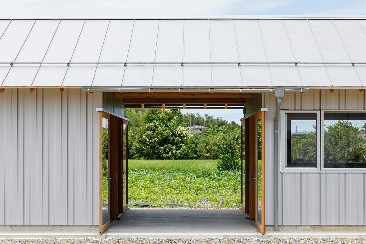 陽や風雨に晒される畑の対照として建つことで、外とつながる楽しさを享受し、同時に安らぎを与える居場所となるような建物を目指しました。