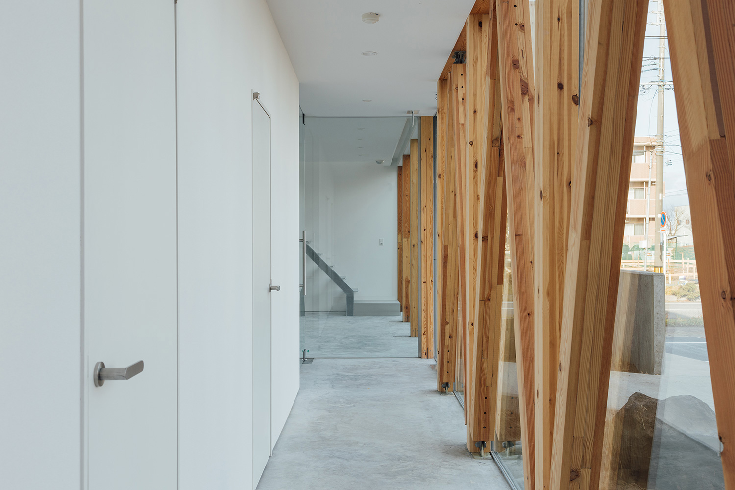「中が見える会社」を地で行く物体的な表現としてガラスを用い、現場仕事の多い職種のイメージアップや社員の方々の意欲の向上につながって欲しいと想い設計をしました。